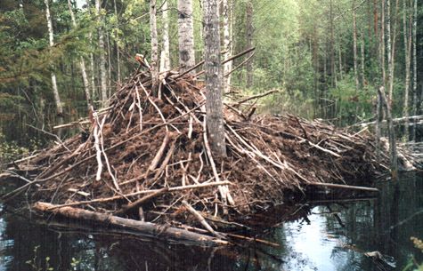 ”Rakentamisen majavat aloittivat tekemällä sopivaan kohtaan joessa padon. Patoa varten majavat ovat kaataneet isojakin puita, enimmäkseen haapoja. Puiden lisäksi patoon on kerätty pienempiä risuja ja mutaa. Pato on niin kova, että se kestää hyvin miehen kävellä joen yli.”