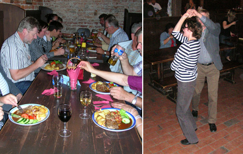 Reipasta matkajohtajaamme oli ennakkoon ohjeistettu, että Tarttoon ei voi mennä jos ei käy Ruutikellarissa, joten sinne suuri joukko suuntasi pikaisten suihkujen ja vaatteiden vaihdon jälkeen. Ruutikellari oli huikean iso tiilirakennus, jossa nimensä mukaan on aikoinaan säilötty ruutia. Tällä hetkellä kellari toimii ruoka ja illanvietto ravintolana. Kellari oli sisustettu kauniisti, massiiviset puiset rakenteet, pöydät, henkilökunnan asut, sekä valtavat ruoka-annokset olivat miellyttävä ja täydentävä kokemus hienolle ja raskaalle päivälle. Osa matkailijoista innostui jälleen vetreyttämään kehoaan paikalla soittaneen bändin säestyksen johdolla.