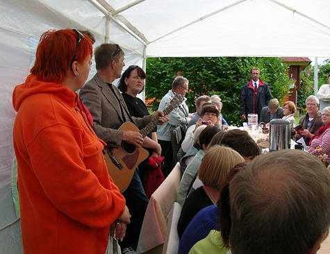 Omistautuminen kylätoimintaan ja ystävällisyys vieraita kohtaan ei jättänyt ketään kylmäksi. Tila oli viihtyisä ja huolella pidetty ja saimme nauttia tilalla kasvaneita luumuja, omenia sekä marjoja. Laulujen ja tuliaisten antamisien jälkeen jatkoimme matkaamme Tarton keskustaan Elva kylän läpi, josta paikallinen rehtori hyppäsi kyytiimme oppaaksi Tarton kiertoajelua varten. Sivuhuomautuksena mainittakoon, että pysähdyimme myös hetkeksi Lounakeskukseen, jossa halukkaat saivat tyydyttää ostoshimojaan. Lounakeskus oli hyvin länsimainen ostoskeskus sisältäen tutut vaate-, koru-, tavaratalokaupat ym.