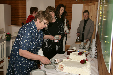 Ruusutervehdysten jälkeen oli vuorossa Martin ja Timon keittämä ja Hannun, Eeron, Veikon ja Jarin tarjoilema kahvi täytekakkuineen.