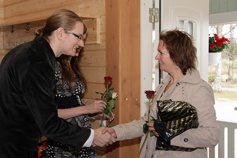 Heti ovella äidit saivat ruusutervehdyksen.
