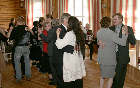 Juhlan lopuksi äidit hakivat herrasmiehensä valssin pyörteisiin.