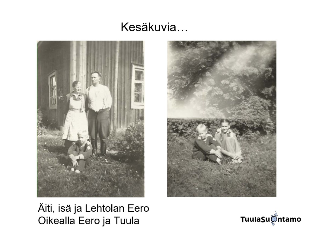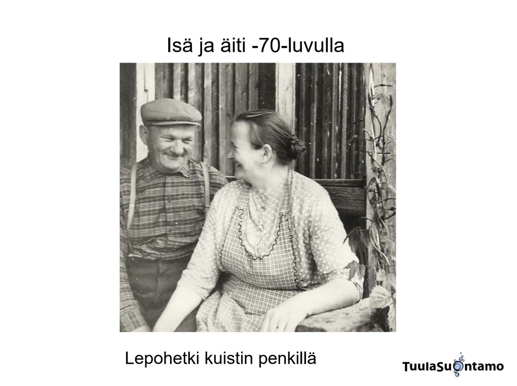 Suurensuonmäessä menimme äidin kanssa aamulypsylle, sinä jäit isän kanssa tupaan juomaan aamukahvia, sopivasti kahdestaan. Kun kupilliset oli juotu ja tyttären käsi saatu, olit helpottuneena tarjoutunut kaatamaan isälle lisää kahvia. Isäni oli kuitenkin kieltänyt ja sanonut äitini Vienon tulevan tuota pikaa navetasta kaatamaan vieraalle kahvia. Ja samassa äiti oli jo tullutkin, kaatanut kahvikupilliset ja lähtenyt saman tien takaisin navettaan. Se oli talon tapa. Emäntä huolehtii vieraiden ja samalla myös isännän passaamisesta. Siinä oli sinulla, kaupunkilais-pojalla, ihmettelemistä pitkäksi aikaa. Et kuitenkaan ottanut tästä roolimallia itsellesi.