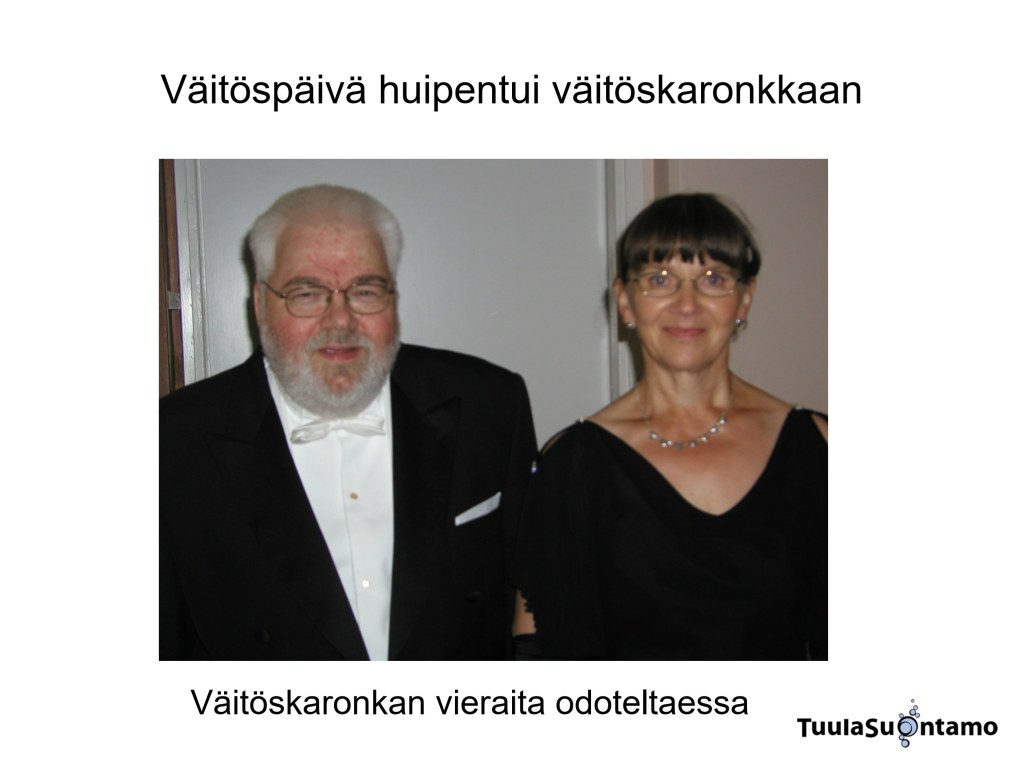 Kemian laitoksen pikkujouluissa esitit Seppo Kasan kanssa monet kerrat pientä näytelmää Pipsa ja Susanna. Sen muistavat varmasti monet kemistit. Et pelännyt heittäytyä pikkutytön rooliinkaan. Runo Hölmö oli esityksissäsi jo taloyhtiön lastenjuhlissa silloin, kun Samuli oli vielä alle kouluikäinen. Viimeisimmäksi esitykseksesi jäi keväällä 2016 juuri tuo Hölmö-runo. Olimme viettämässä pitkäaikaisen ystävämme Vuokon 70-vuotissyntymäpäiviä ja ilahdutit meitä kaikkia, sekä lapsia että aikuisia, tällä hauskalla runolla.