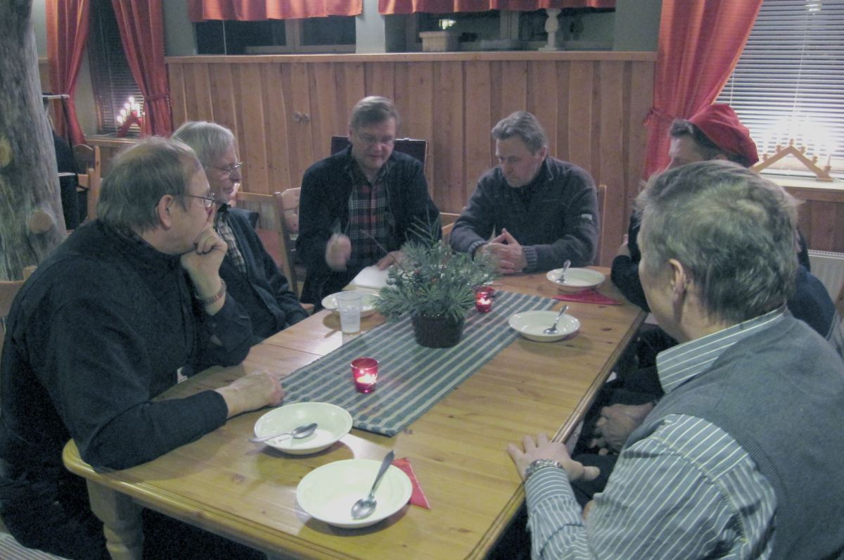 Vihdoin koitti kuusijuhlan ilta. Isämme Viljo valjasti hevosen reen eteen, ja niin lähdimme Isän ohjatessa hevosta matkaan. Meitä oli kyydissä useampi sisarus,mutta hyvin mahduimme rekeen ja vällyjen alla oli lämmin olla. Ulkona oli kirpeä pakkas-sää, joka ei haitannut. Rekimatka on erityisesti jäänyt mieleen,sellaista tunnelmaa on vaikea enää tavoittaa.